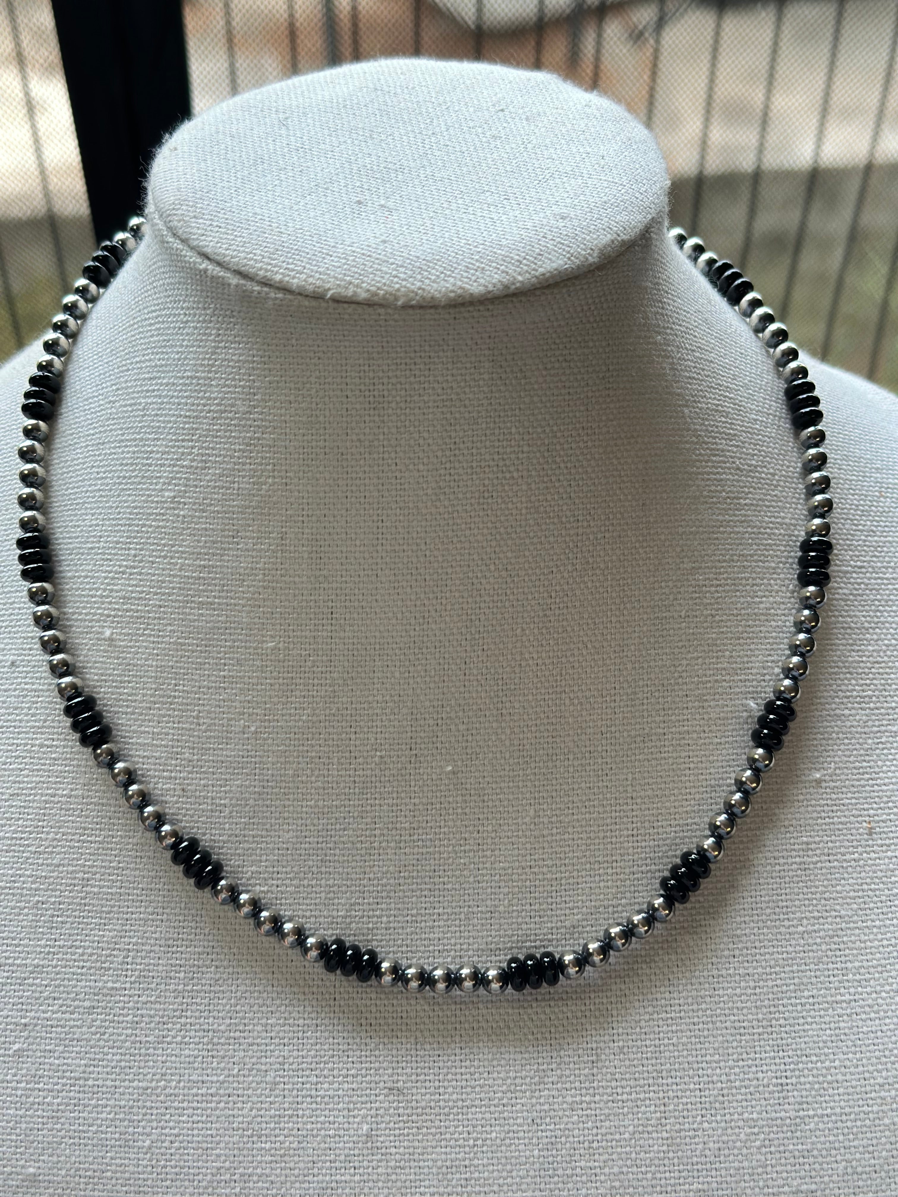 Onyx Rondelle & Sterling Pearl Necklace