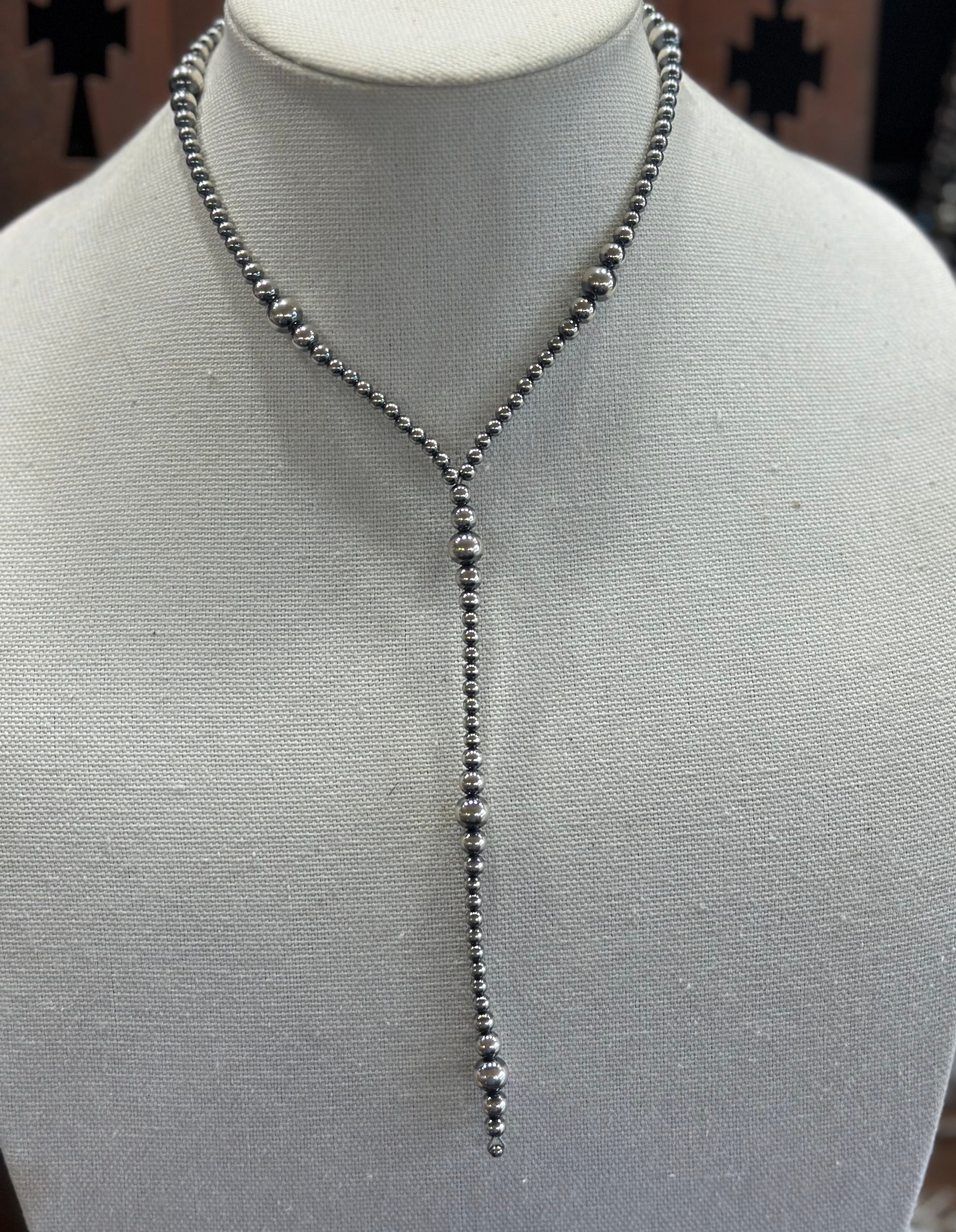 Dress up (or down) for any occasion with our versatile sterling graduated pearl lariat necklace! Perfect for date night or adding a touch of style to a casual day, this must-have accessory is a staple for any wardrobe. You can wear it alone or stack multiple necklaces for a trendy look.