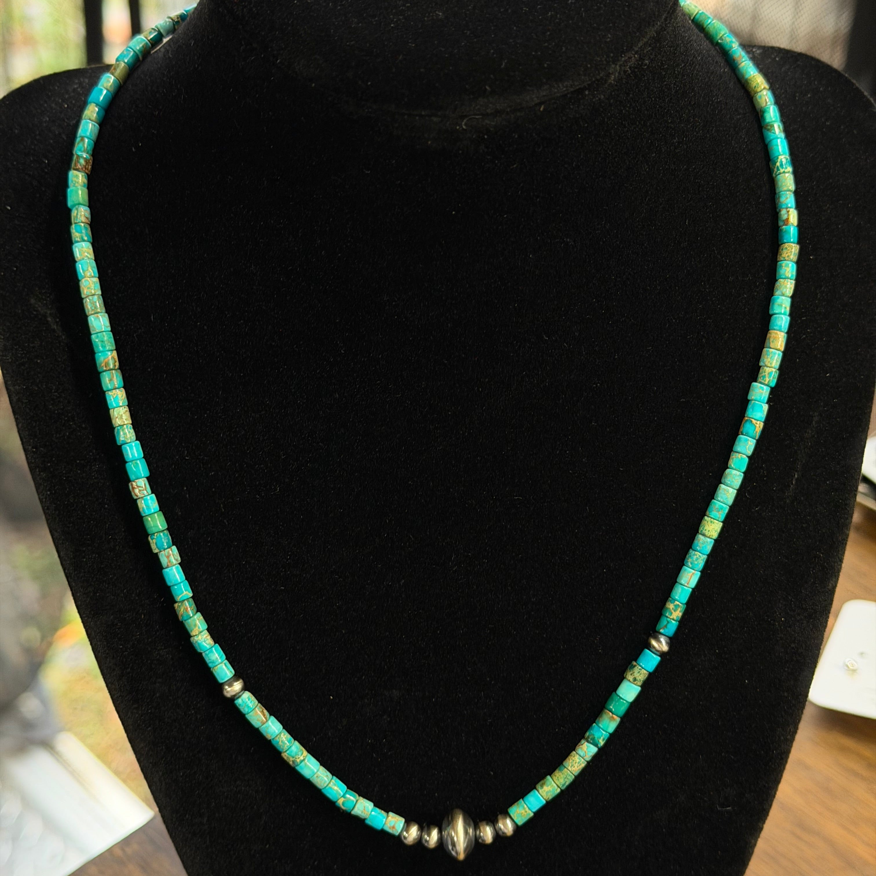 Turquoise Heishi & Sterling Pearl - Saucer Necklace