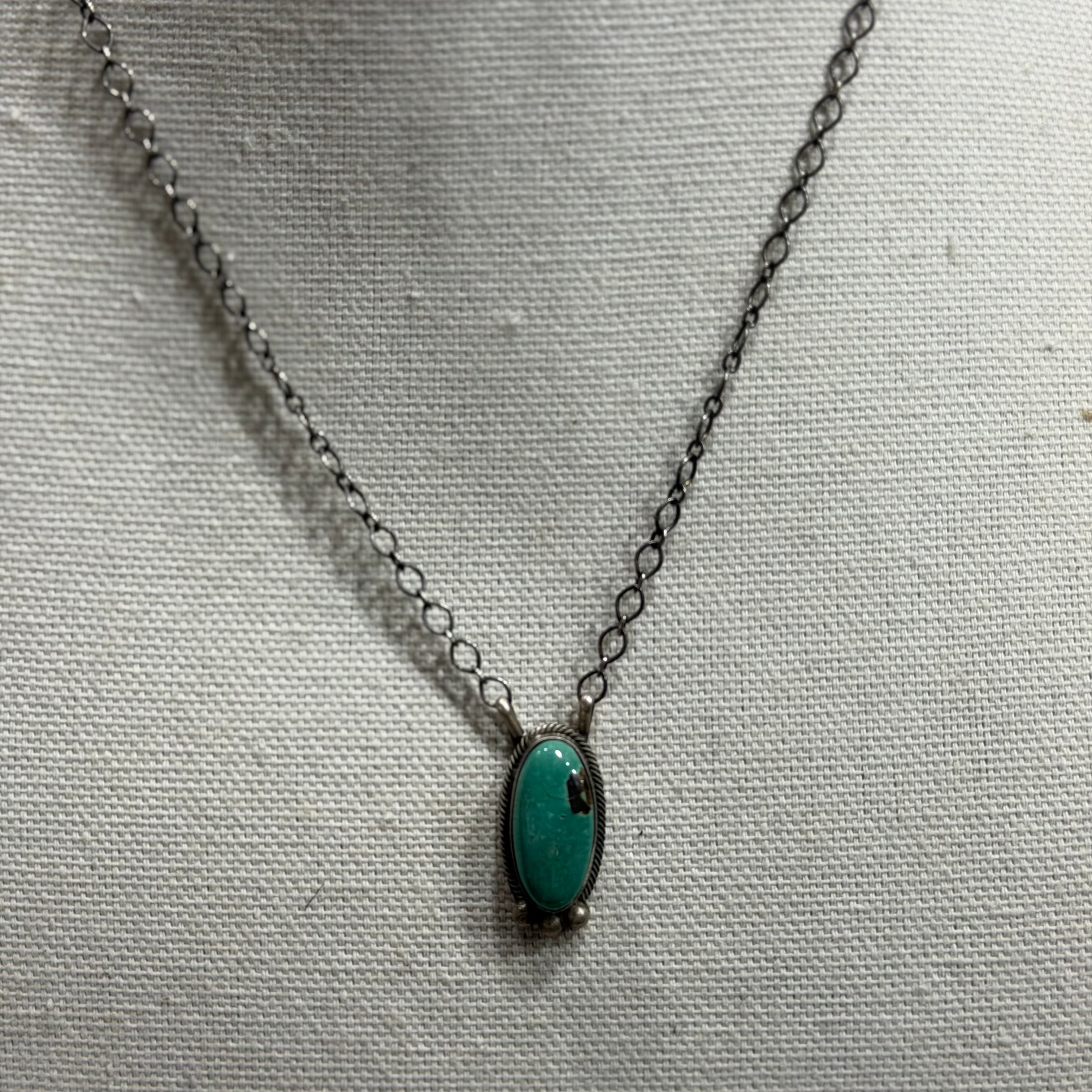 Discover the captivating beauty of Royston turquoise with our Royston Single Stone Necklace. Featuring a hand-selected, natural turquoise stone renowned for its vibrant green and blue hues intertwined with unique matrix patterns, this necklace is a true statement of Southwest elegance.