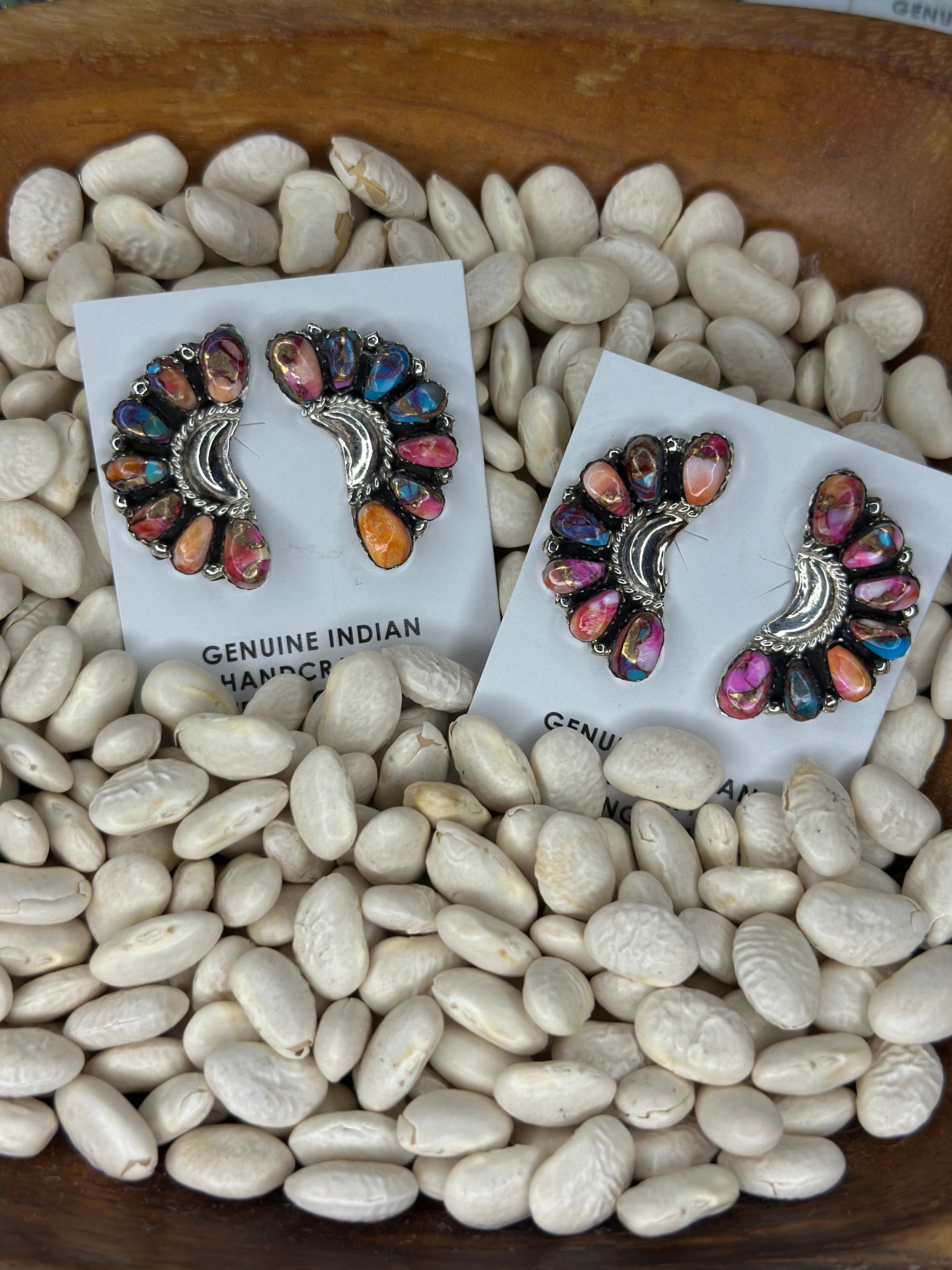 Bursting with vibrant hues, playful charm, and chic flair, our Dahlia Half Clusters are the ultimate summer accessory you can't miss. With pops of purple, pink, orange, blue and gold these pair with a multitude of colors.