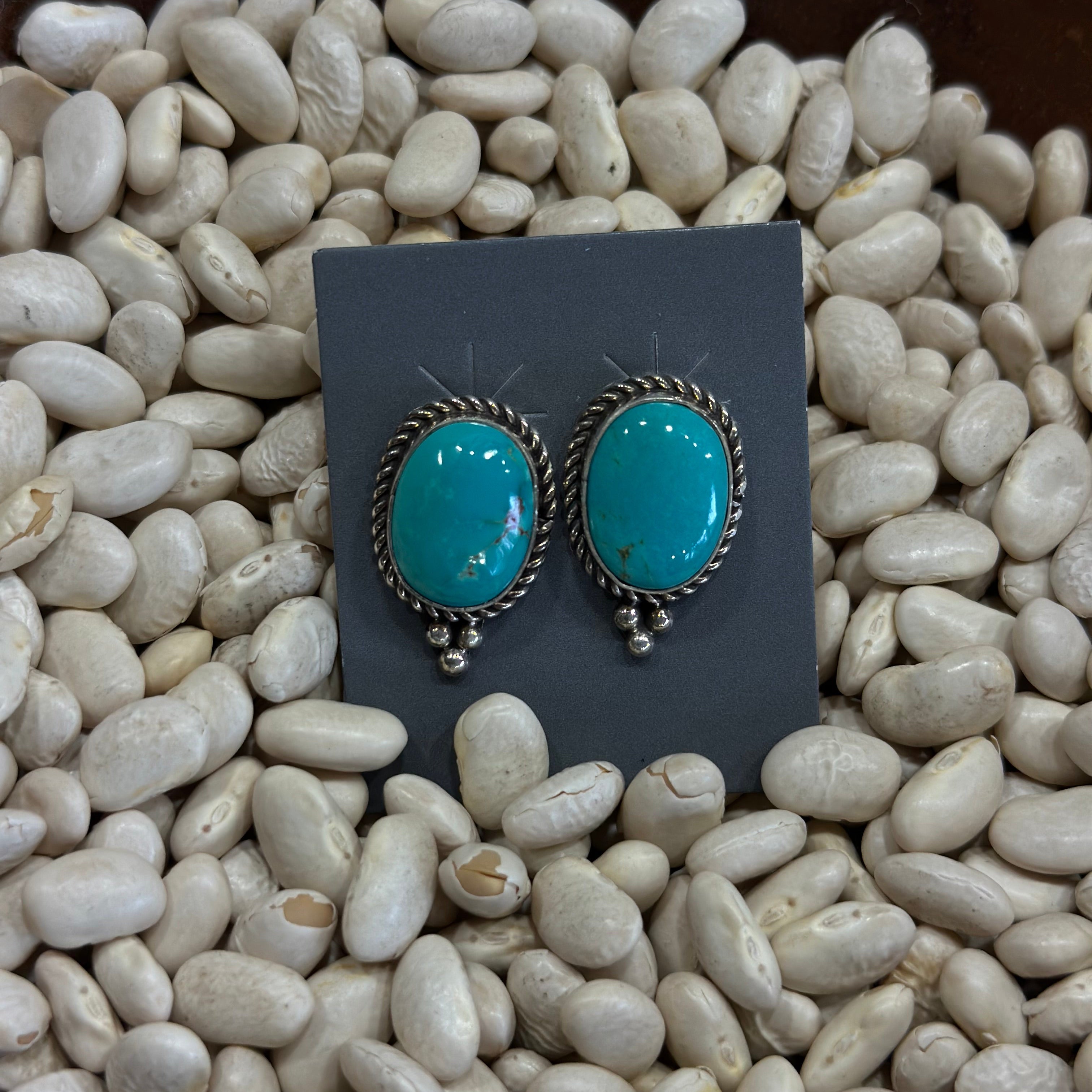 Bold, timeless, and full of Southwestern charm — our Kingman Turquoise Earrings feature genuine stones from the legendary Kingman mine in Arizona. Known for their vibrant blue hues and striking matrix patterns, each stone is hand-selected and set in sterling silver to highlight its natural beauty. Lightweight and eye-catching, these earrings bring a touch of desert elegance to any outfit.