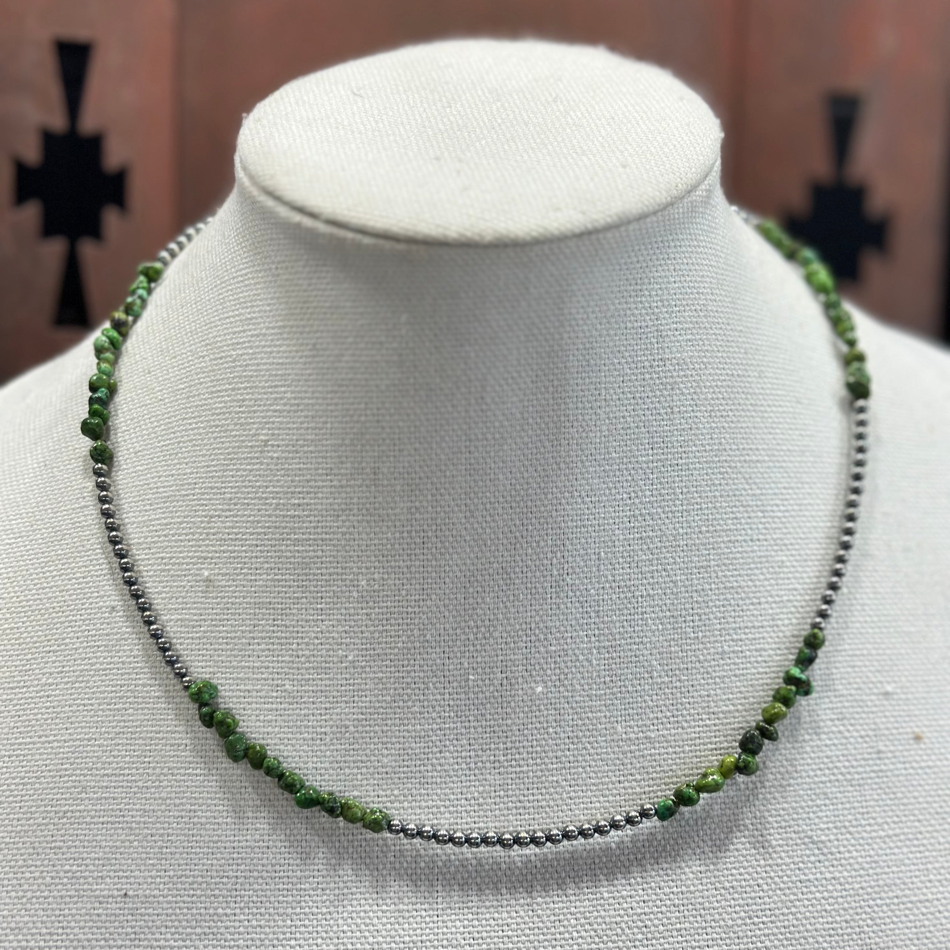 With its striking blend of vibrant greens and soft golden hues, this Sonoran Gold turquoise necklace is a true showstopper that still feels effortlessly wearable. Each stone is uniquely patterned, making every piece one of a kind. Perfect for layering or wearing solo, it adds a fresh, earthy elegance that pairs beautifully with anything in your wardrobe — from casual denim to dressed-up evenings.