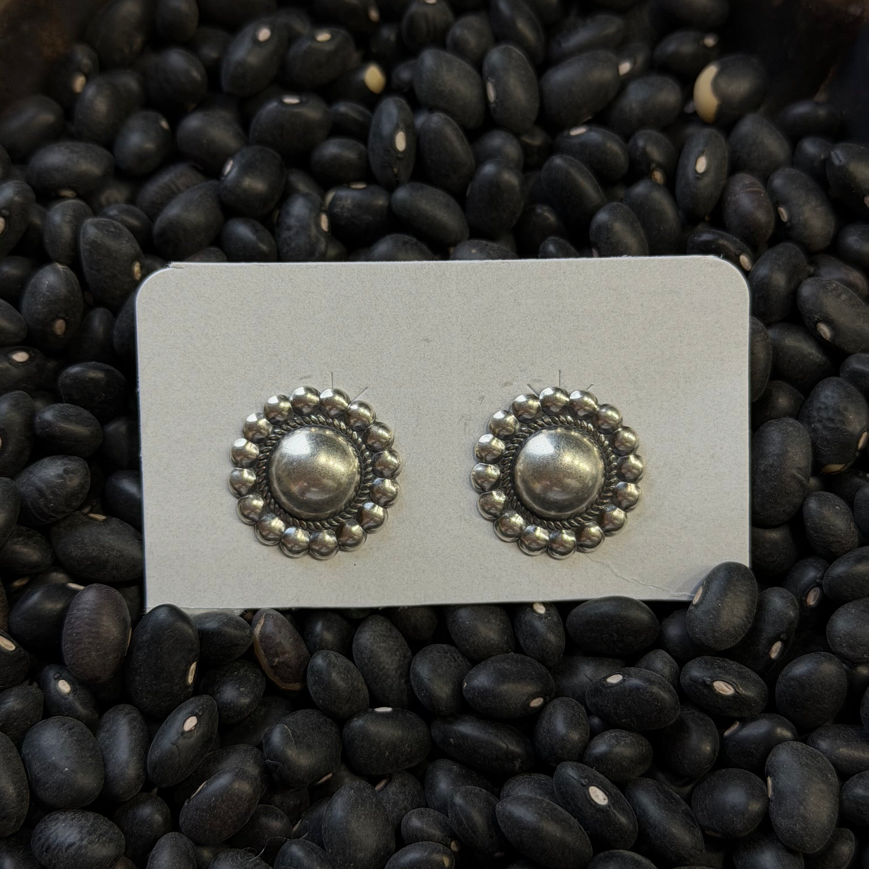Classic and effortlessly timeless, our Silver Concho Studs are a refined nod to traditional Southwestern design. Crafted in polished silver, each stud features a detailed concho pattern that adds texture, depth, and subtle character.