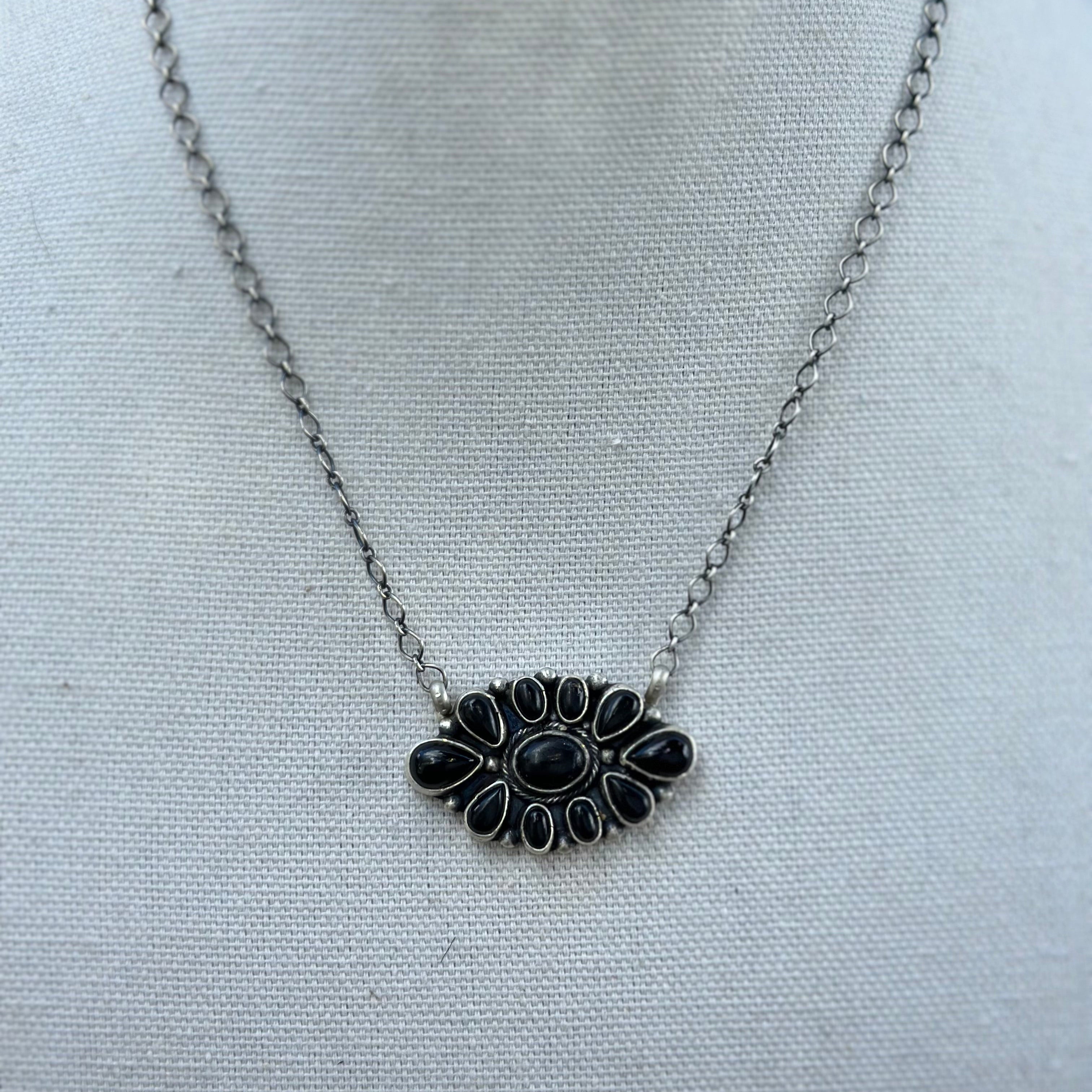 Dark, dramatic, and effortlessly chic — this onyx cluster necklace is a true statement piece. Featuring a stunning arrangement of deep black onyx stones, the clustered design adds texture and depth while maintaining a classic, wearable feel. Perfect for dressing up or adding a bold touch to everyday looks, this necklace brings just the right amount of edge and sophistication to any outfit.