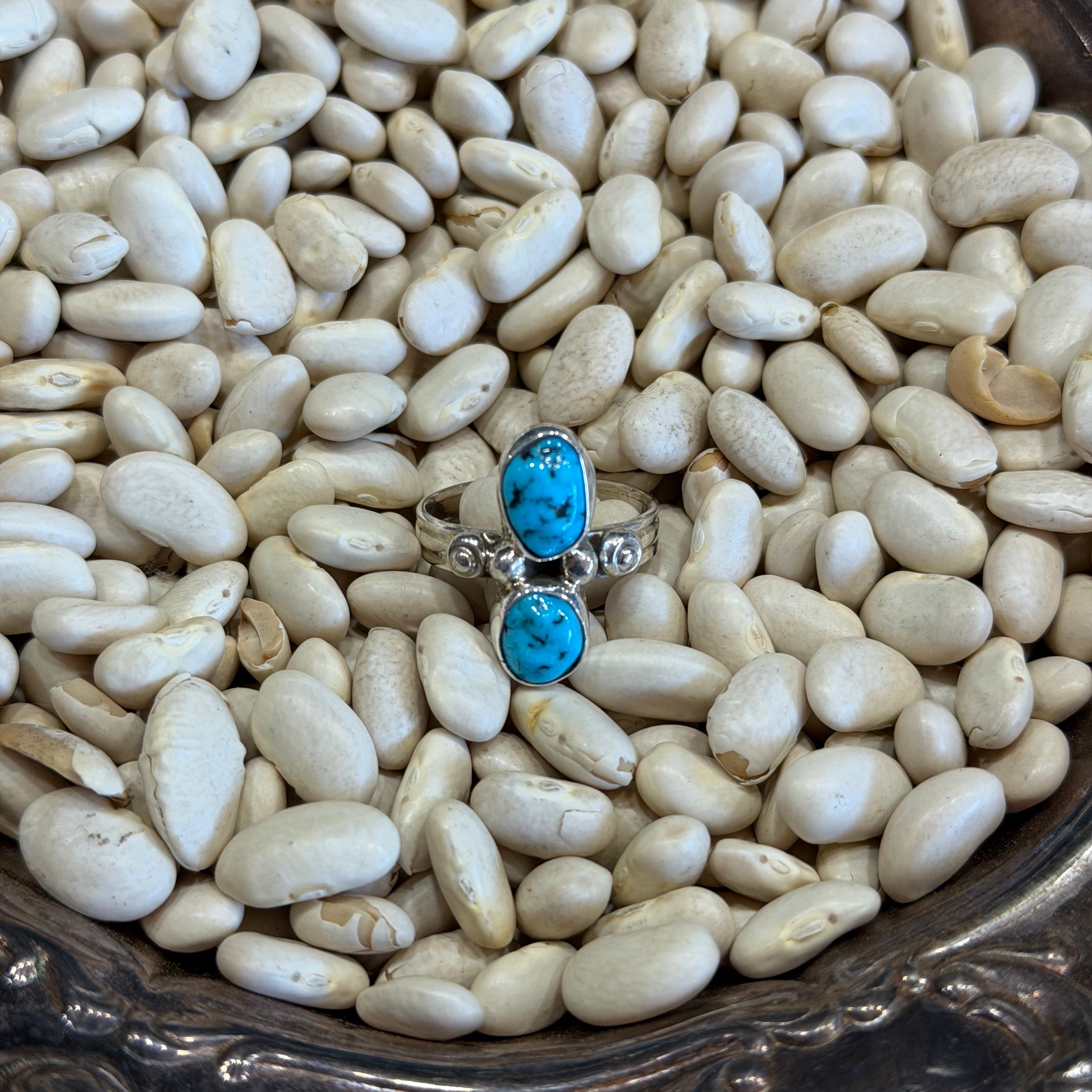 Twice the turquoise, twice the charm — our Double Stone Turquoise Ring features two hand-selected turquoise stones set side by side in a bold yet balanced design. Each stone is unique in its hue and matrix, showcasing the natural beauty and character that make turquoise so timeless. Set in sterling silver, this ring offers a striking silhouette that's perfect for stacking or wearing solo as a statement.
