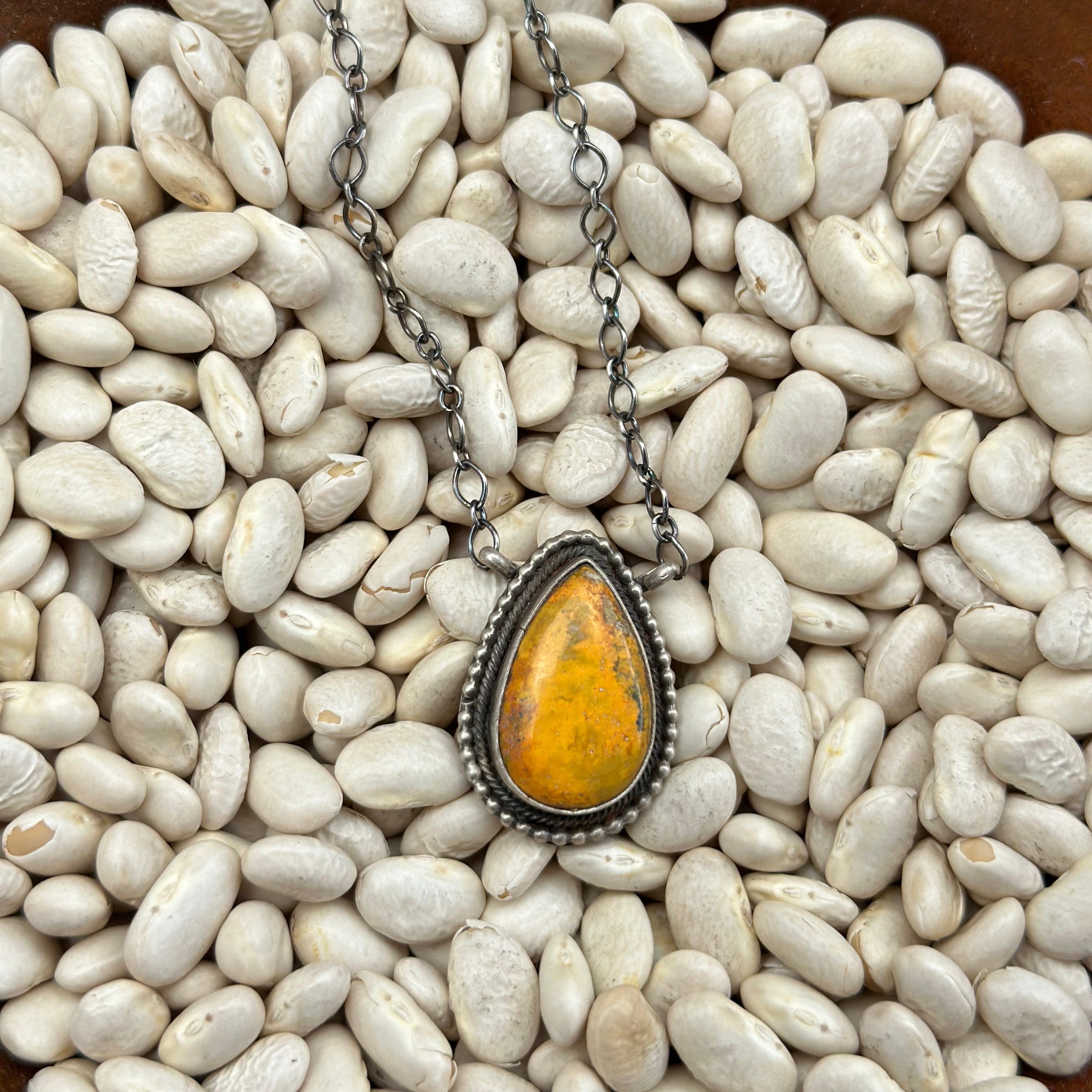 Striking and full of natural energy, our Bumblebee Jasper Single Stone Necklace features a vibrant, hand-selected stone known for its bold swirls of yellow, orange, and charcoal grey. Set in a simple bezel setting, the stone’s vivid patterns take center stage — making each piece truly one of a kind. Suspended from a delicate chain, this necklace is a powerful statement of color and individuality.