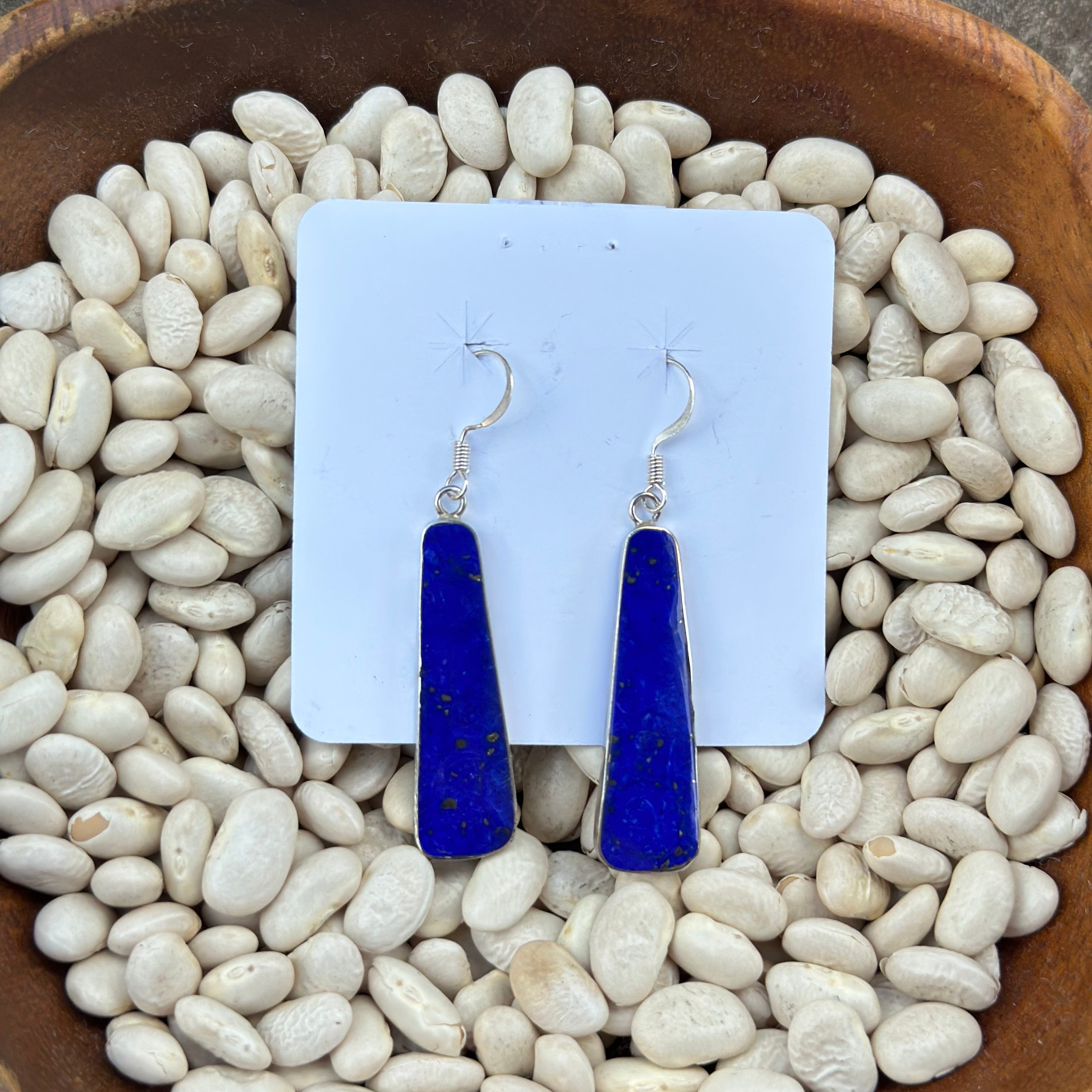Striking in color and effortlessly elegant, our Lapis Slab Earrings feature bold, hand-cut slabs of genuine lapis lazuli. With their deep celestial blue tones and natural golden pyrite flecks, each stone evokes the beauty of a night sky. Set with minimalist sterling silver ear wires, these earrings let the natural stone take center stage — making them perfect for both everyday wear and special occasions.