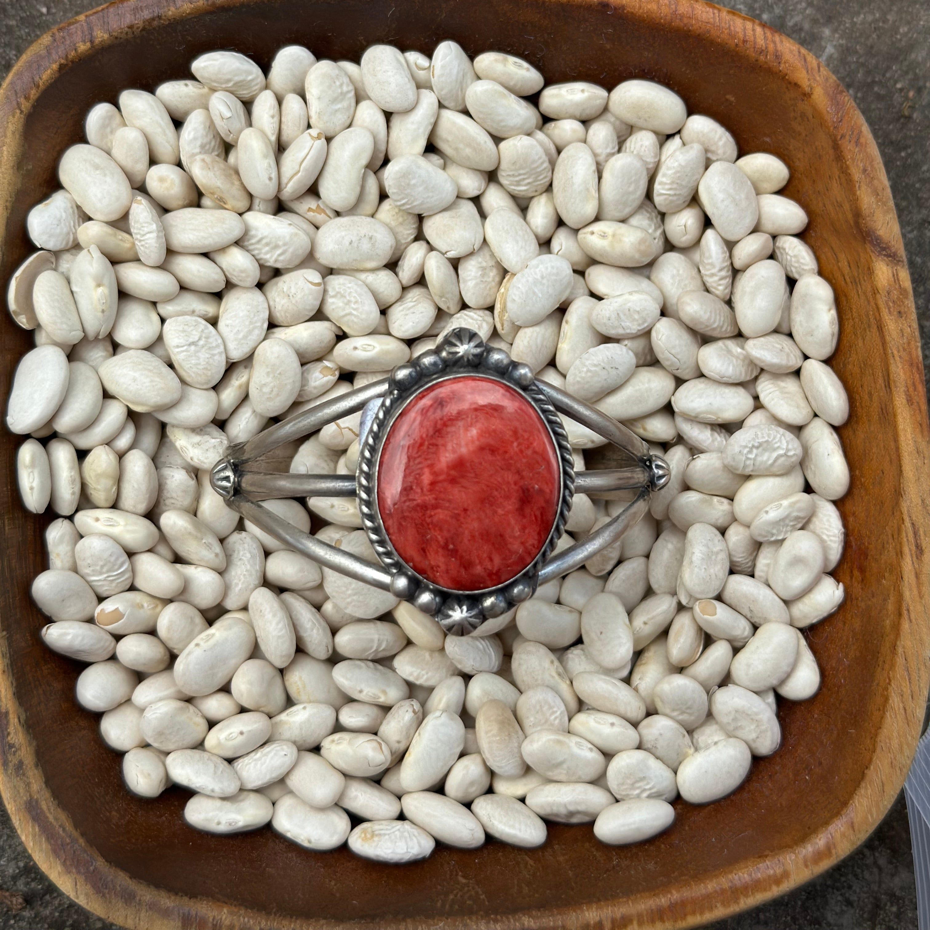 Vibrant, earthy, and full of character — our Red Spiny Cuff is a striking statement piece rooted in natural beauty. Featuring a genuine red spiny oyster shell stone, each cuff showcases fiery shades of coral, rust, and orange, set in a handcrafted sterling silver band. With its warm tones and rich texture, this cuff adds a bold Southwestern touch to any collection.