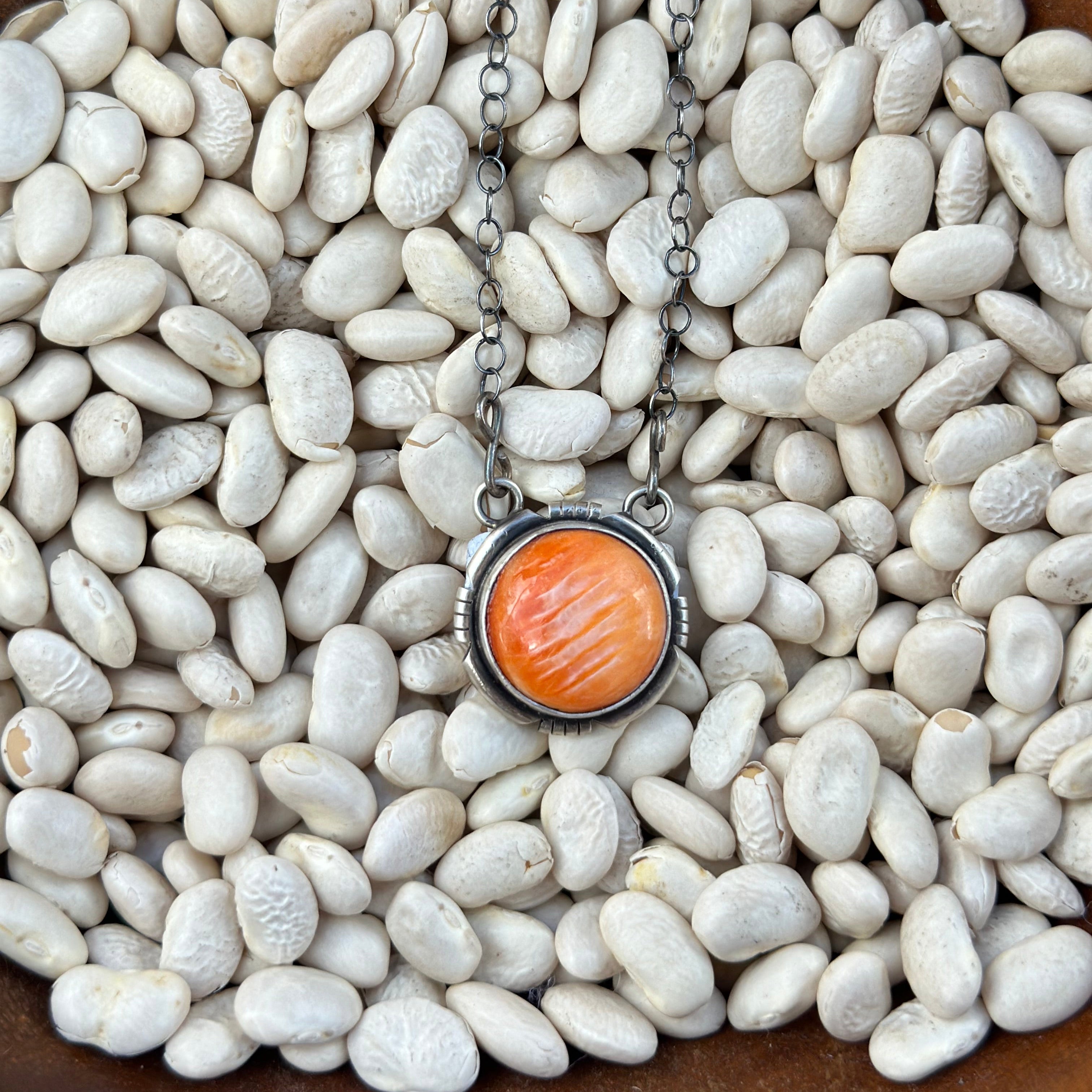 Bright, bold, and beautifully balanced — this orange spiny oyster necklace brings the perfect mix of warmth and elegance. Set in a sleek round design, it’s perfect for layering or wearing solo as a standout statement. Effortlessly eye-catching and easy to wear with anything.