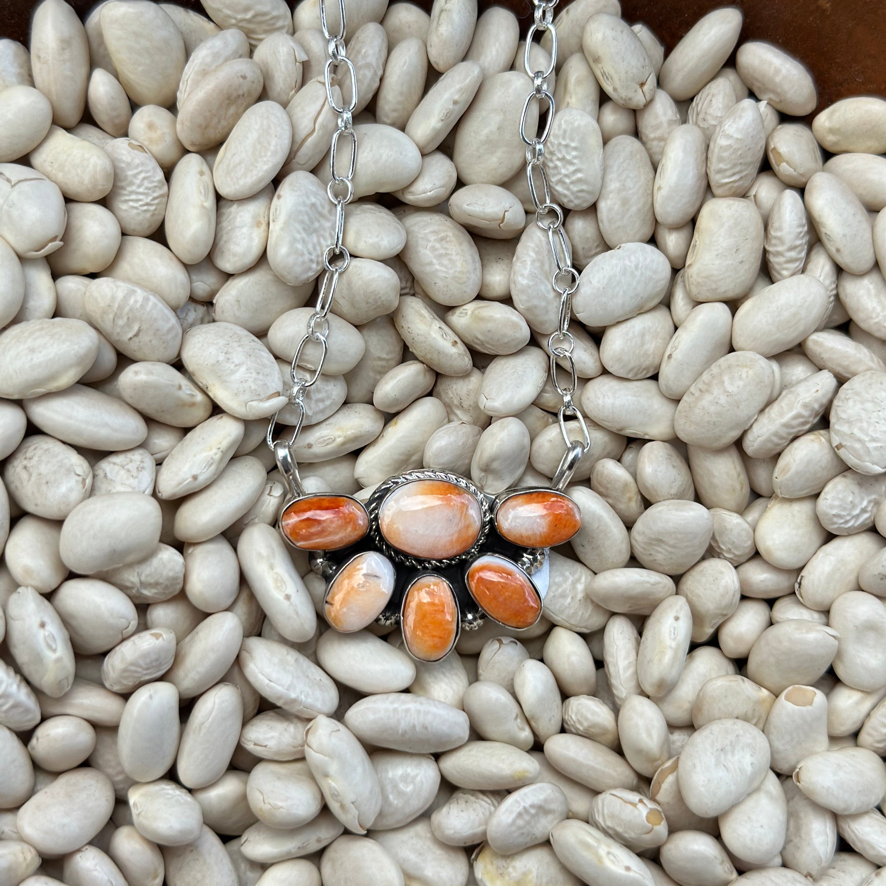 Add a bold splash of color to your look with our Half Cluster Orange Spiny Necklace. Featuring a stunning arrangement of vibrant orange spiny oyster stones, this piece blends natural texture with modern design. The asymmetrical half-cluster layout creates visual interest and uniqueness, while each stone is carefully hand-selected for its rich hue and organic beauty. Perfect for layering or as a standout statement on its own, this necklace brings warmth, earthiness, and artisan craftsmanship to any outfit.