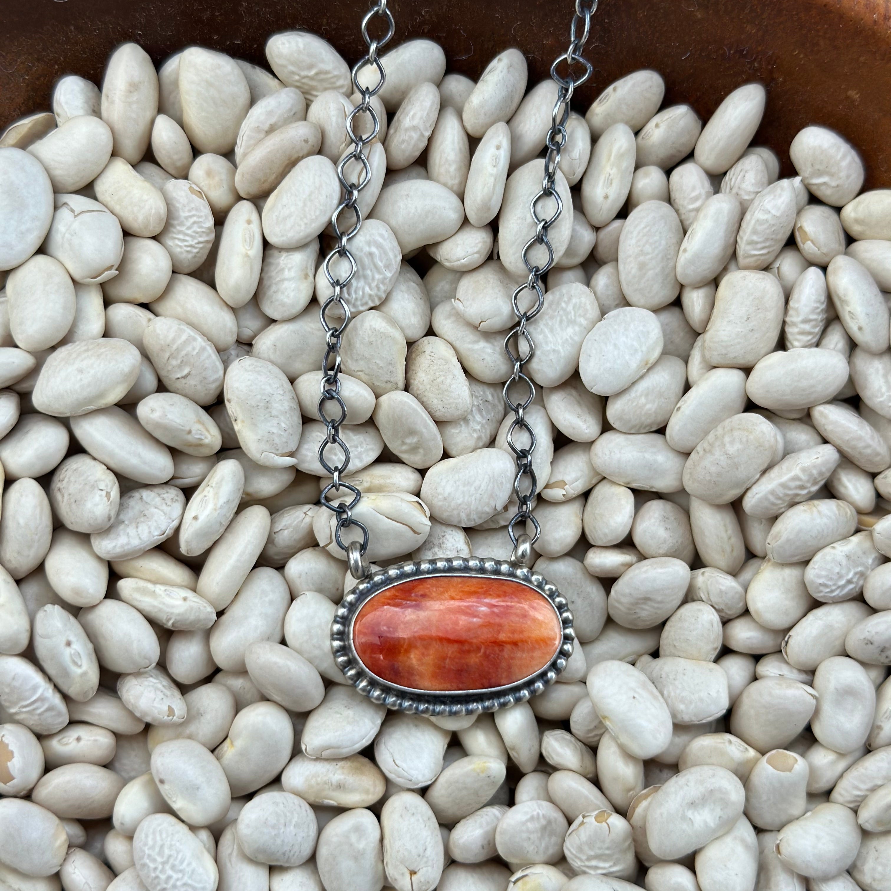 Bring color, character, and coastal charm to your jewelry collection with our handcrafted Spiny Oyster Necklace. Featuring genuine spiny oyster shell in rich tones of orange, coral, and deep red, each bead reflects the natural beauty of the sea with its own unique texture and hue. Carefully strung and finished with quality sterling silver, this necklace is a bold yet organic statement piece.